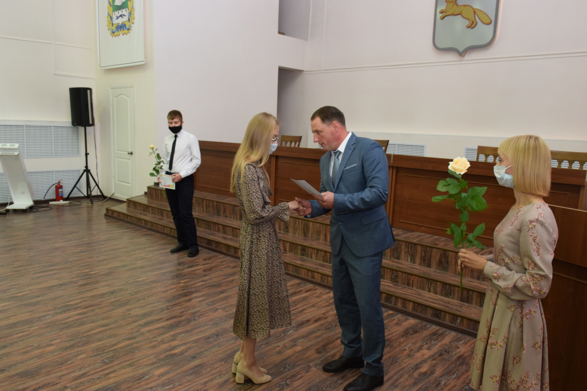 Сегодня в большом зале Администрации города состоялся традиционный торжественный прием медалистов 2021 года для вручения премии Главы города Шадринска.